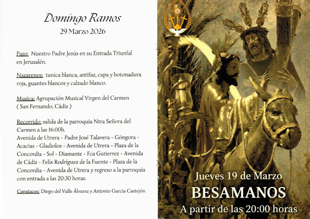 HERMANDAD NUESTRO PADRE JUSÚS EN SU ENTRADA TRIUNFAL EN JEUSALÉL Y NUESTRO PADRES JESÚS DE AMOR Y LA PASIÓN