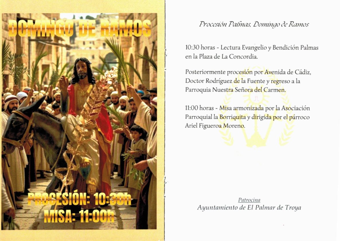 Consulta aquí todos los detalles sobre los actos, horarios y recorridos de la Asociacion Parroquial la Borriquita y Nuestro Padre Jeús de Amor y la Pasión, y la Hermandad del Santísimo Cristo de la Buena Muerte y Nuestra Señora de los Dolores en su Soledad durante esta Semana Santa. Vive cada momento con devoción y participa en una de las manifestaciones más solemnes de nuestra tradición.