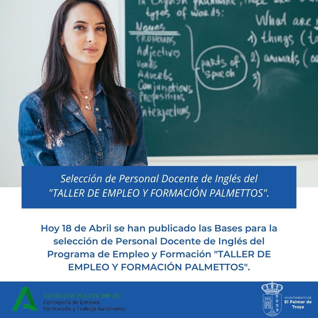 BASES PARA LA SELECCIÓN DEL PERSONAL DOCENTE DE INGLÉS PARA EL PROGRAMA DE EMPLEO Y FORMACIÓN "TALLER DE EMPLEO Y FORMACIÓN PALMETTOS".