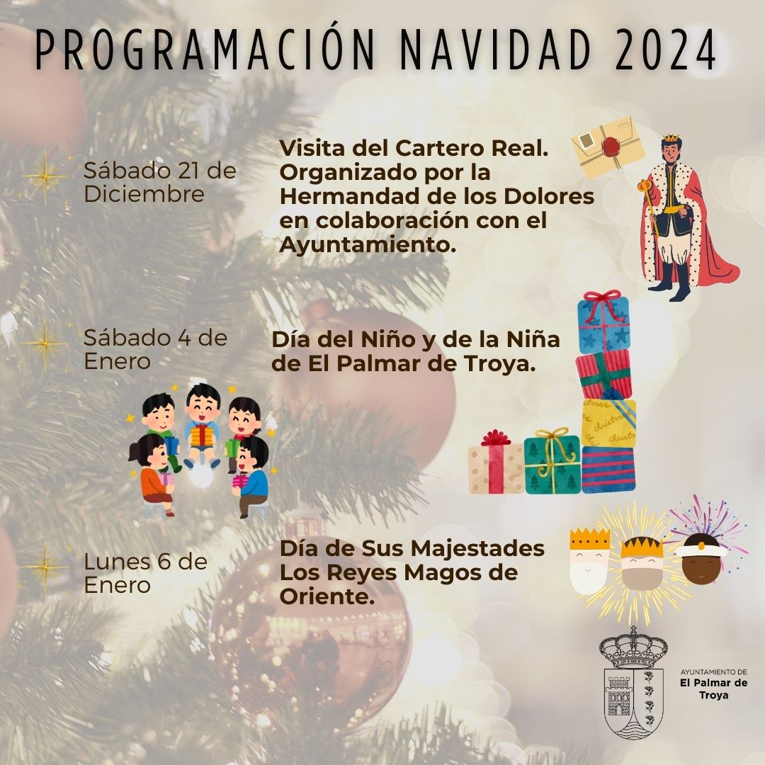 - Visita del Cartero Real: El Cartero Real recogerá las cartas de los niños y niñas para los Reyes Magos. Organizado por la Hermandad de los Dolores y en colaboración con el Ayuntamiento.
