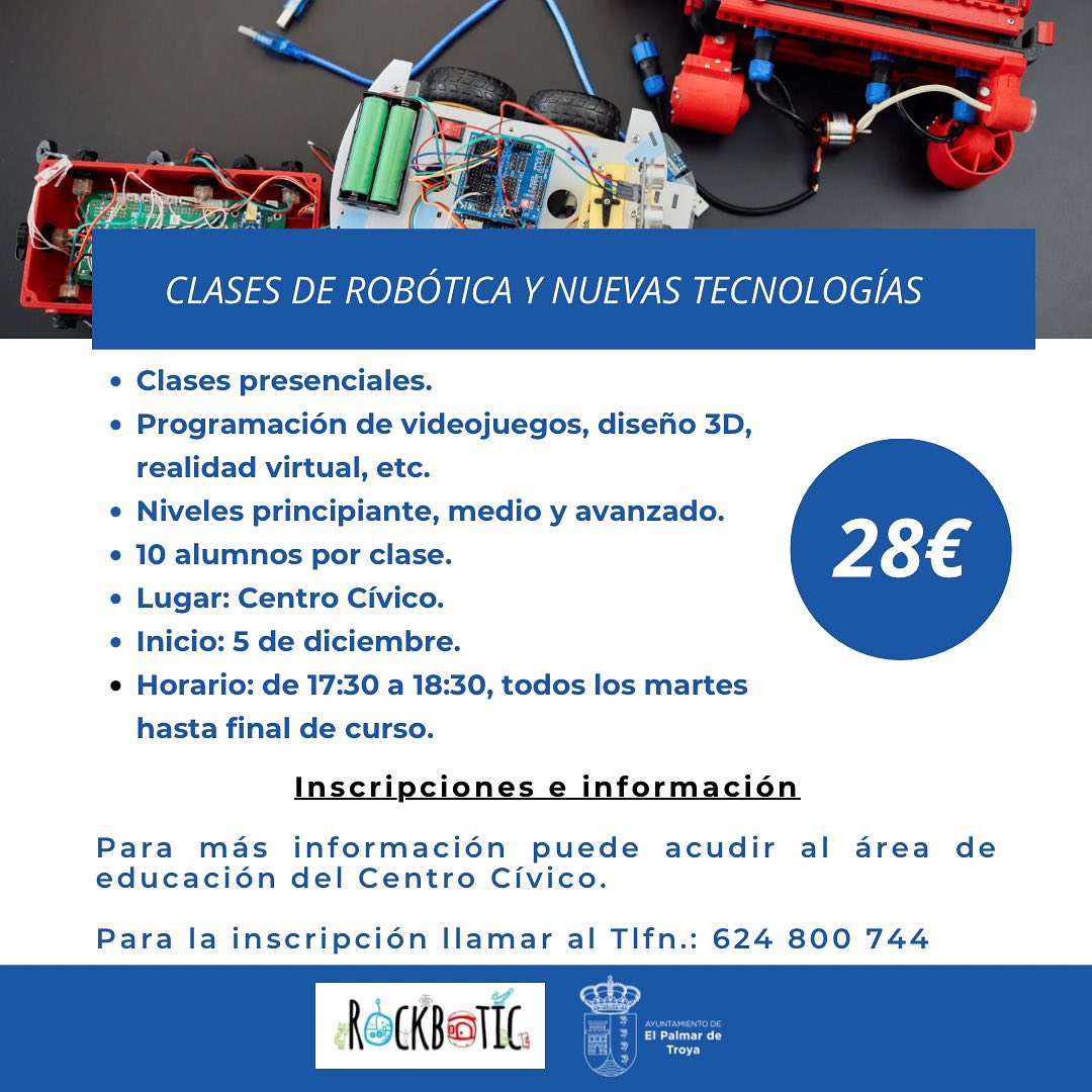 El próximo martes 5 de diciembre, dará comienzo en nuestro centro cívico clases de Robótica y Nuevas Tecnologías.