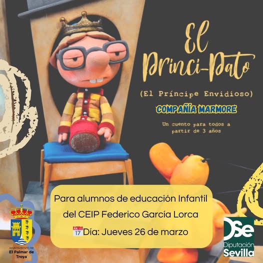 Con motivo de la programación del Día Internacional del Teatro, el alumnado de Educación Infantil del CEIP Federico García Lorca disfrutará de la representación de la obra “El Princi-Pato (El príncipe envidioso)”, a cargo de la compañía Marmore.