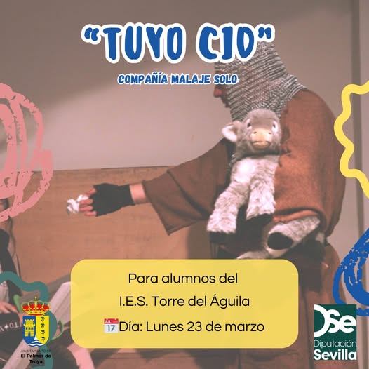 Con motivo de la programación del Día Internacional del Teatro, el alumnado del IES Torre del Águila se trasladará al Centro Cívico para asistir a la representación de la obra “Tuyo Cid”, de la compañía Malaje Solo.