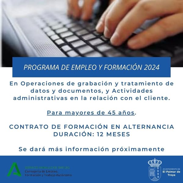 Nos complace anunciar que El Palmar de Troya ha sido nuevamente beneficiario del Programa de Empleo y Formación 2024. Este proyecto nos permitirá ofrecer oportunidades a 15 personas, esta vez para mayores de 45 años de nuestro municipio.